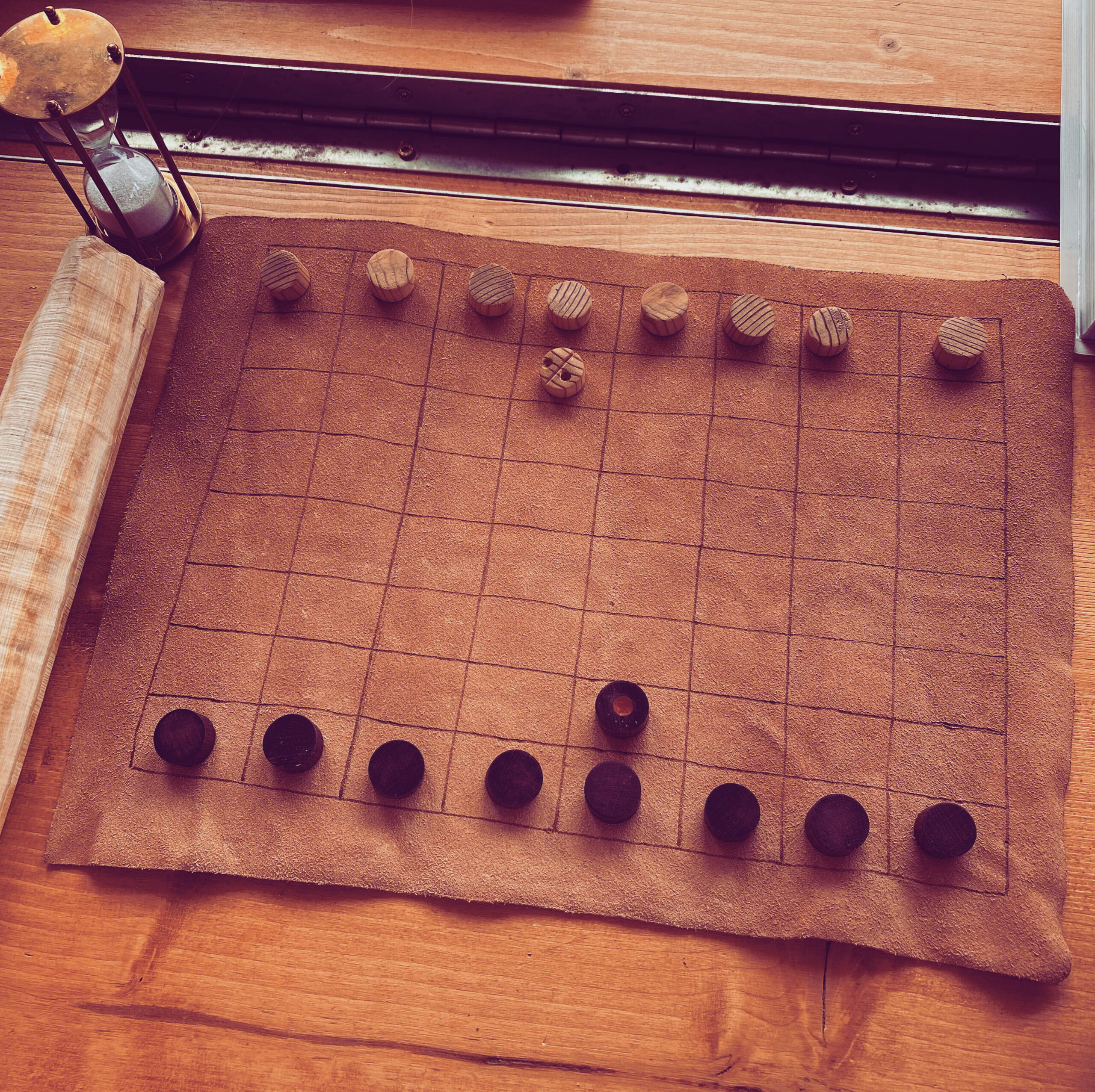 Latrunculi è un antico gioco romano di strategia dove due giocatori cercano di catturare le pedine dell'altro. È come una sfida di astuzia e tattica!